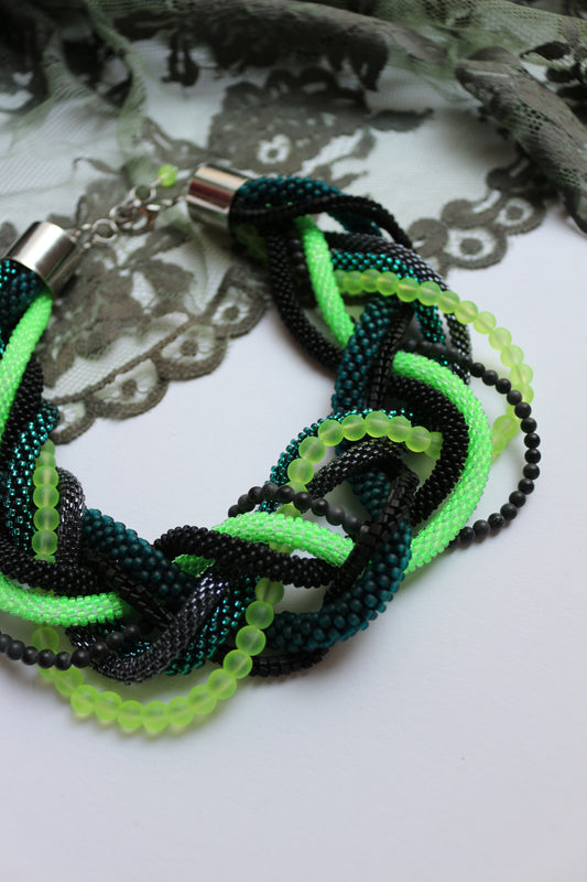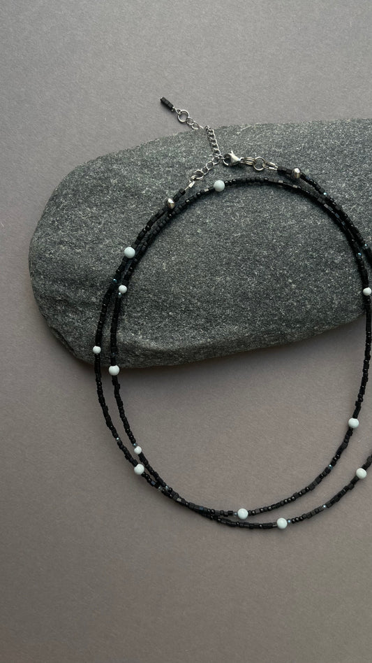 Beaded seed beads necklace with natural stone (Shungite)