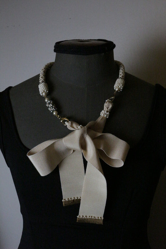 Beige Necklace with ribbon
