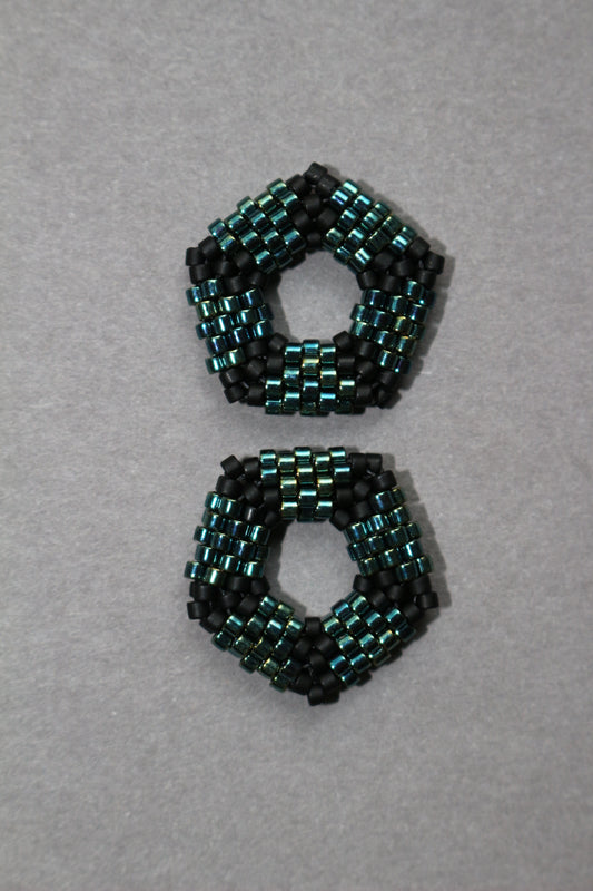 Beaded pentagon element - Black matt, Blue-Green