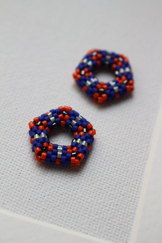 Beaded pentagon element - Orange, Blue, Grey