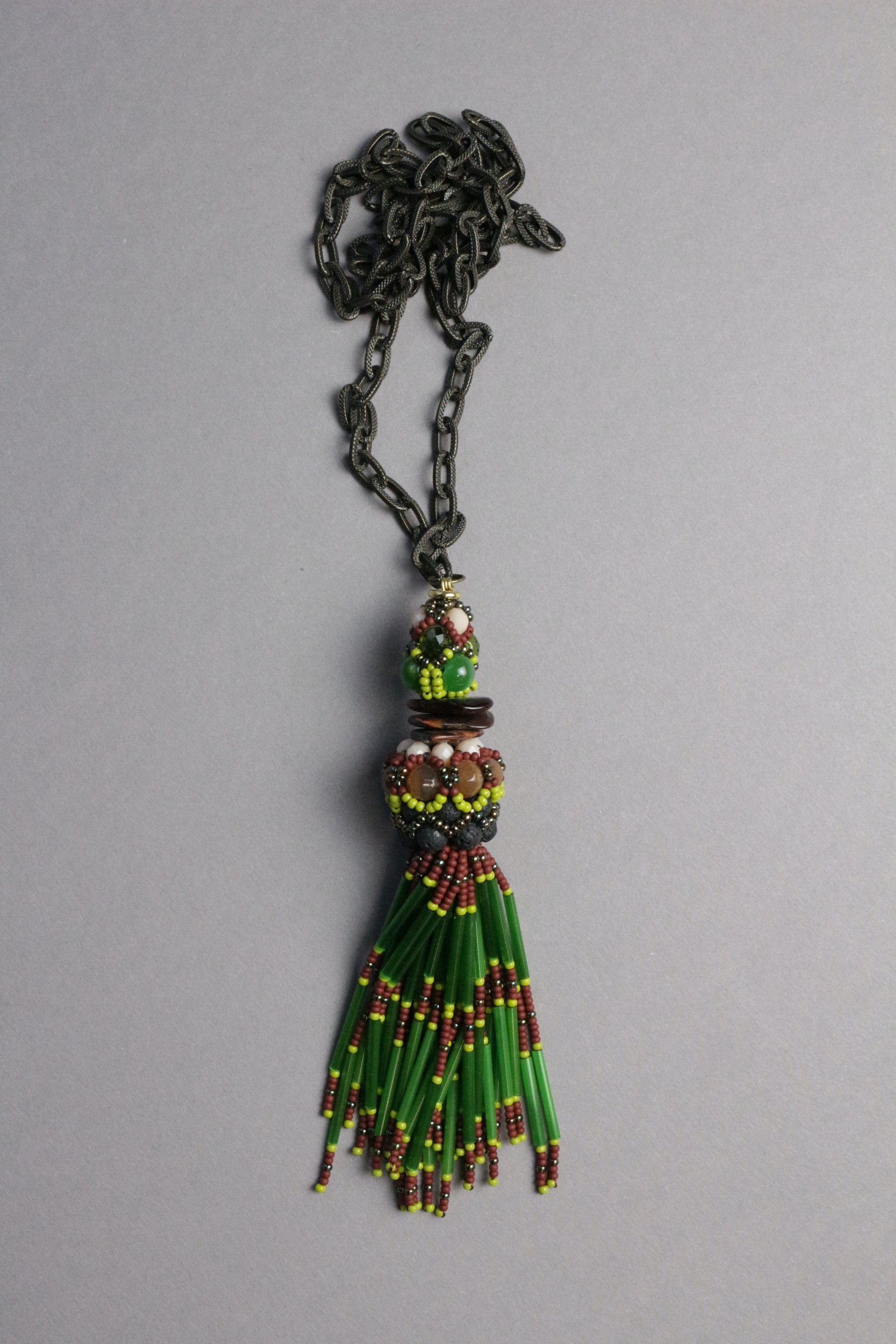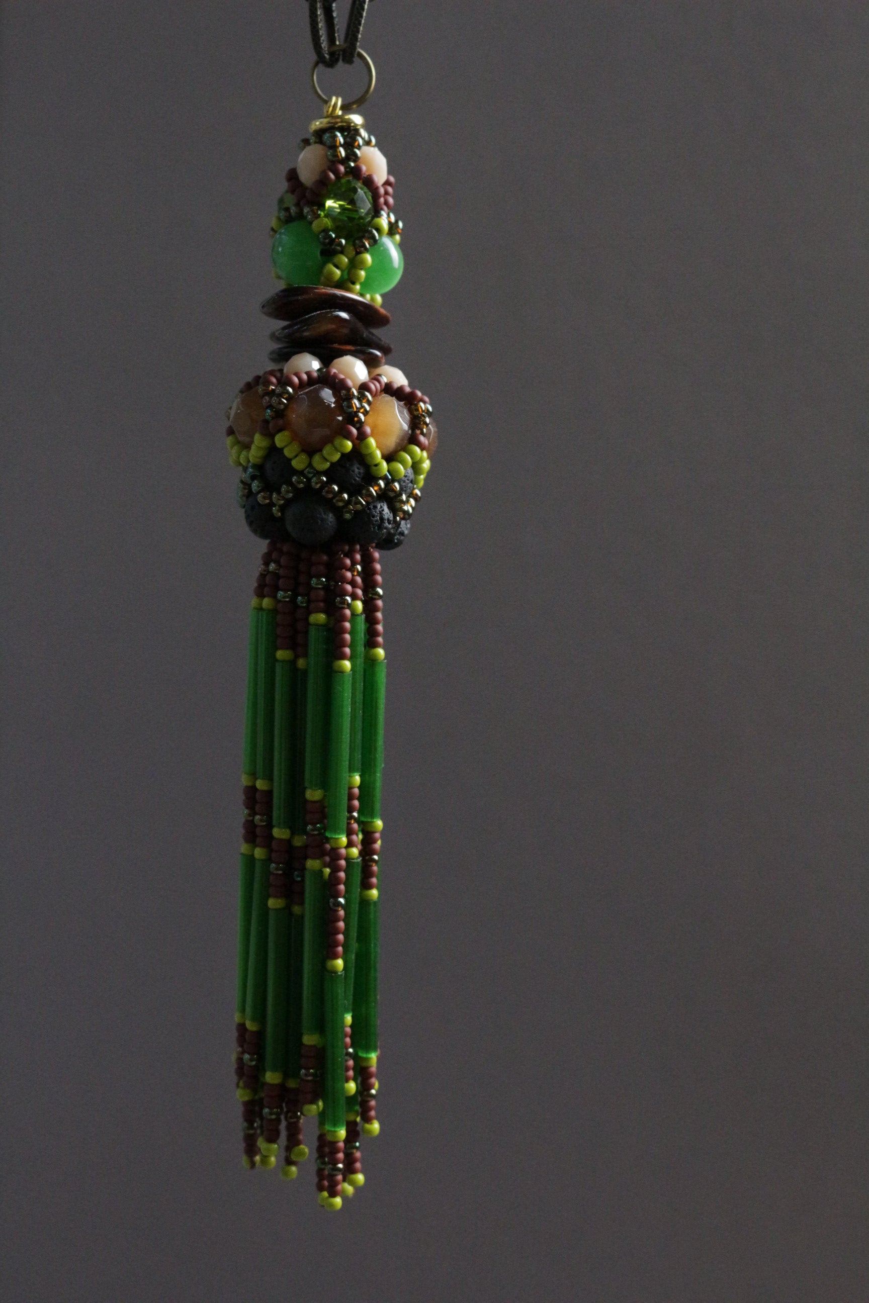When creating this necklace, I had a few materials that I wanted to put together, but I didn't know how it would look in the final result. For example, there were lava stones, cat's eye stones, and long green seed bead sticks. Now, looking at this beauty, it seems that all the beads are in their right places and the necklace is charming. But believe me, when it was all thrown together in a pile, it seemed to me that it would take a long time to have a beautiful result...